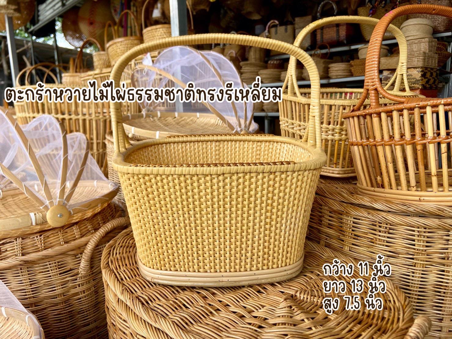 ตะกร้าหวายไม้ไผ่ธรรมชาติทรงรี่เหลี่ยม